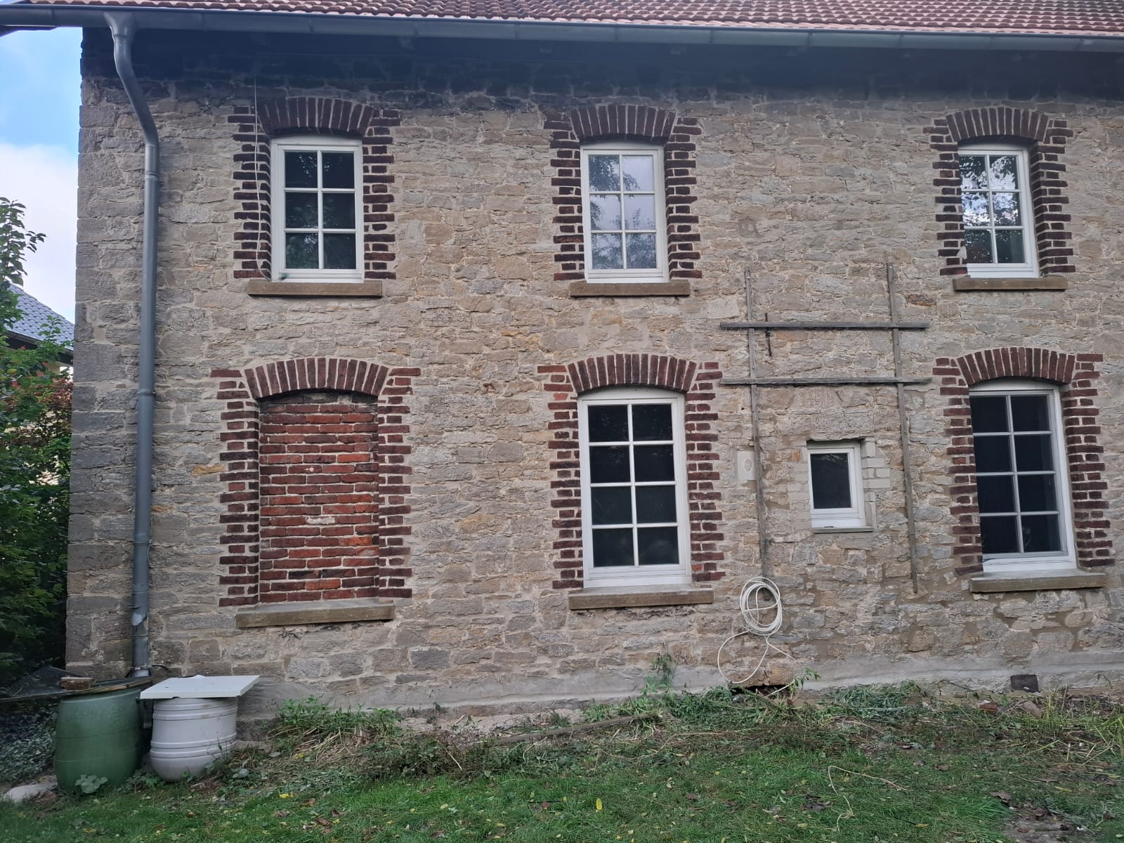 Leopoldshöhe-Asemissen 10/2025: Restaurierung der Fugen des Bruchsteinhauses aus dem Jahre 1889.
